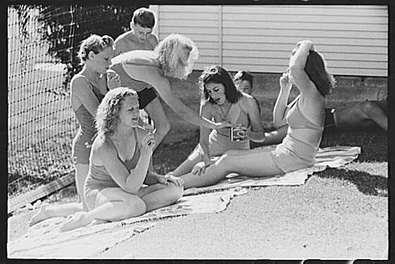 Sun bathers at the park swimming pool, Caldwell, Idaho.